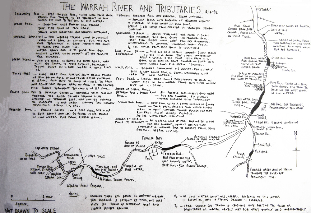 It was a real pleasure to fish the Warrah. You can wade along the bank very safely and comfortably and fish the opposite bank with great elegance and precision. A switch or a light double-hand rod is very helpful here. That way you can cast long distance with an underhand technique instead of casting overhead. We caught very well and Eddie is still mourning over the gigantic sea trout monster his fly ALMOST took.